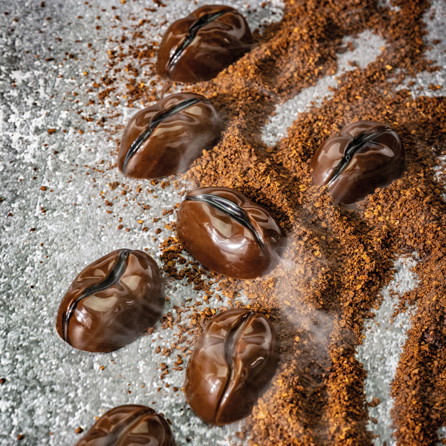 Moule à chocolat en forme de grain de café, idéal pour réaliser des pralines en forme de grain de café.