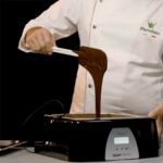 Le panneau frontal fournit des suggestions pour le tempérage, réglables manuellement ou en suivant les 3 programmes différents selon le type de chocolat : blanc, au lait ou noir.
