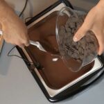 Le Digital Meltinchoc, un fondoir à chocolat numérique, est fabriqué en plastique résistant à la chaleur, avec un réservoir et un couvercle amovibles en acier inoxydable et une sonde de température pour réguler la température du chocolat.